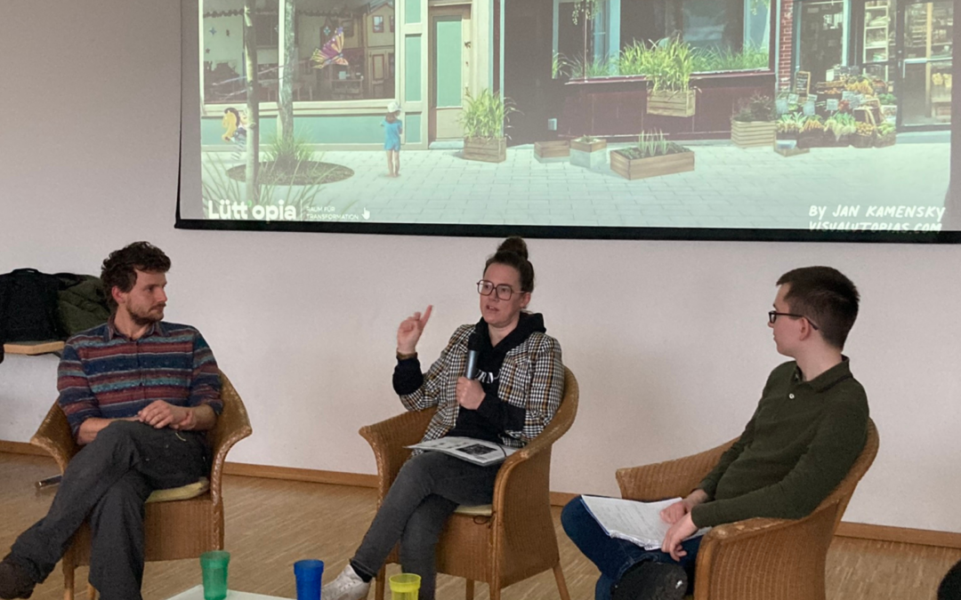 Umso erhebender und motivierender war es, Tobi Rosswogs Worten zu lauschen. Unbeirrt, kreativ und kraftvoll ist er. Tobi – seit vielen Jahren Wandelaktivist auf vielen Ebenen, der u.a. die Wandel-Konferenzen livingutopia und utopikon realisiert und damit viele tausend Menschen aktiviert hat – hat sich seit einem halben Jahr in Wolfsburg niedergelassen, um sich direkt am Standort des größten Automobilherstellers Europas Volkswagen dafür zu engagieren, exemplarisch die notwendige Mobilitätswende zu vollziehen: Aus dem Automobil- soll ein Mobilitätskonzern werden – eine Verkehrswendestadt.Ursprünglich ging Tobi nach Wolfsburg, um den Bau des geplanten VW-Trinity-Werks zu verhindern. Der Werksneubau ist nun vom Tisch – doch es braucht den großen Wurf einer wirklichen Verkehrswende. Dafür setzt sich Tobi mit einem engagierten Team und kreativen, motivierenden und verspielten Aktionen ein. Ein Kristallisationspunkt wird das Verkehrswende-Camp sein, das vom 5.-10. Mai in Wolfsburg stattfindet. Hingehen!
